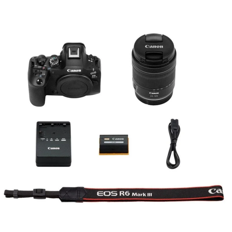 Canon EOS R6 Mark III + RF 24-105mm F4-7.1 IS STM. Tipo de cámara: MILC, Megapixeles: 32,5 MP, Tipo de sensor: CMOS, Máxima resolución de imagen: 6960 x 4640 Pixeles. Sensibilidad ISO (max): 102400. Intervalo de longitud focal: 24 - 105 mm. Velocidad máxima del obturador: 1/16000 s. Wifi. Máxima resolución de video: 6960 x 3672 Pixeles. Diagonal de la pantalla: 7,62 cm (3"), Pantalla táctil. tipo de visor de imágen: Electrónico. Peso: 609 g. Color del producto: Negro