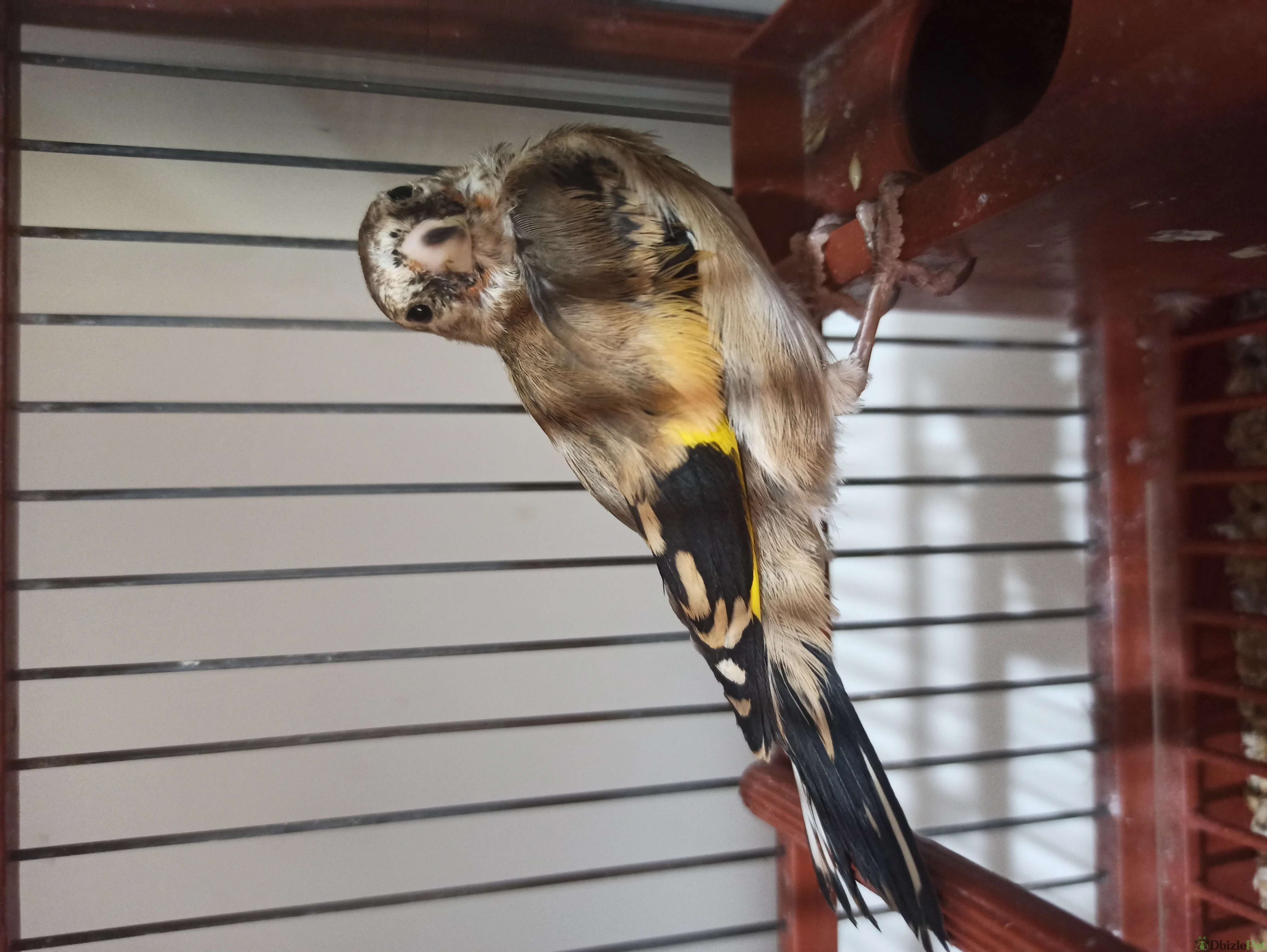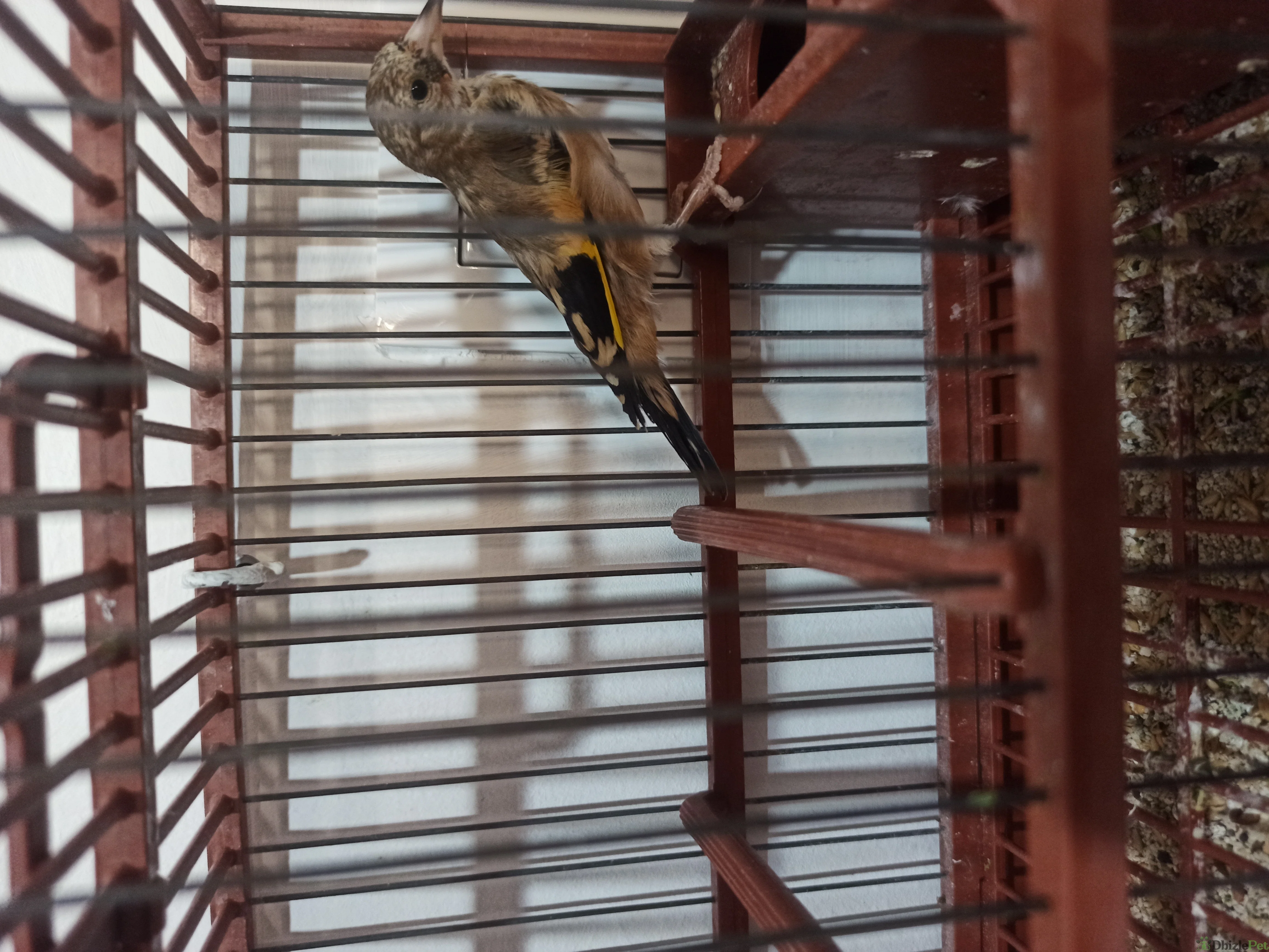 Cedo jilguero novel criado a mano, repasando y manso, con jaula y casillero.