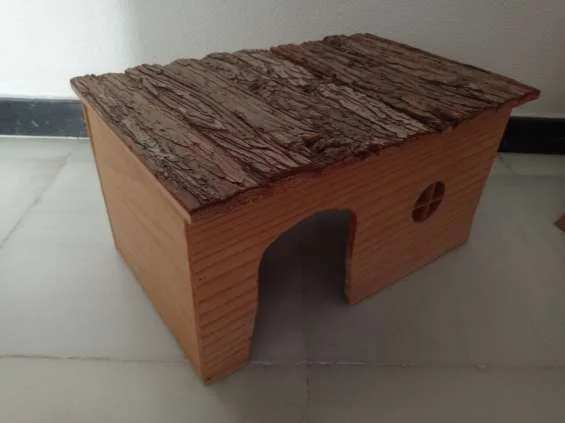 Casa de madera estilo cabaña, con 2 puertas, y ventanita Artesanía 43 ancho x 23 fondo x 28 alto. nido pequeñas mascotas cobayas, degús, jerbos,... Refugio donde comer, descansar, y que les proporciona la necesidad que sienten de sentirse protegidas.