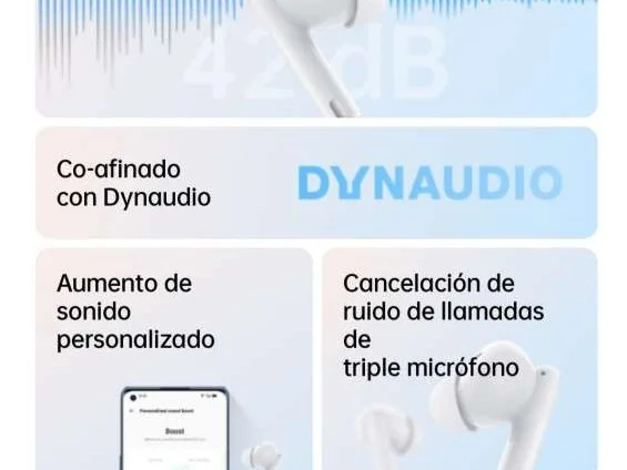 Contenido de la caja (ver foto): auriculares, estuche de carga, manual de instrucciones, cargador y un par de almohadillas tamaño S, M y L.
