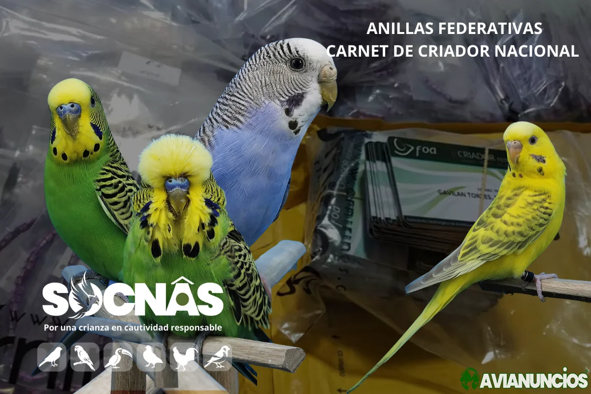 En SOCNAS – Asociación de Ornitología, te ofrecemos la posibilidad de hacerte criador nacional federado, con acceso a anillas federativas oficiales y carnet de criador nacional, conforme a la normativa vigente.